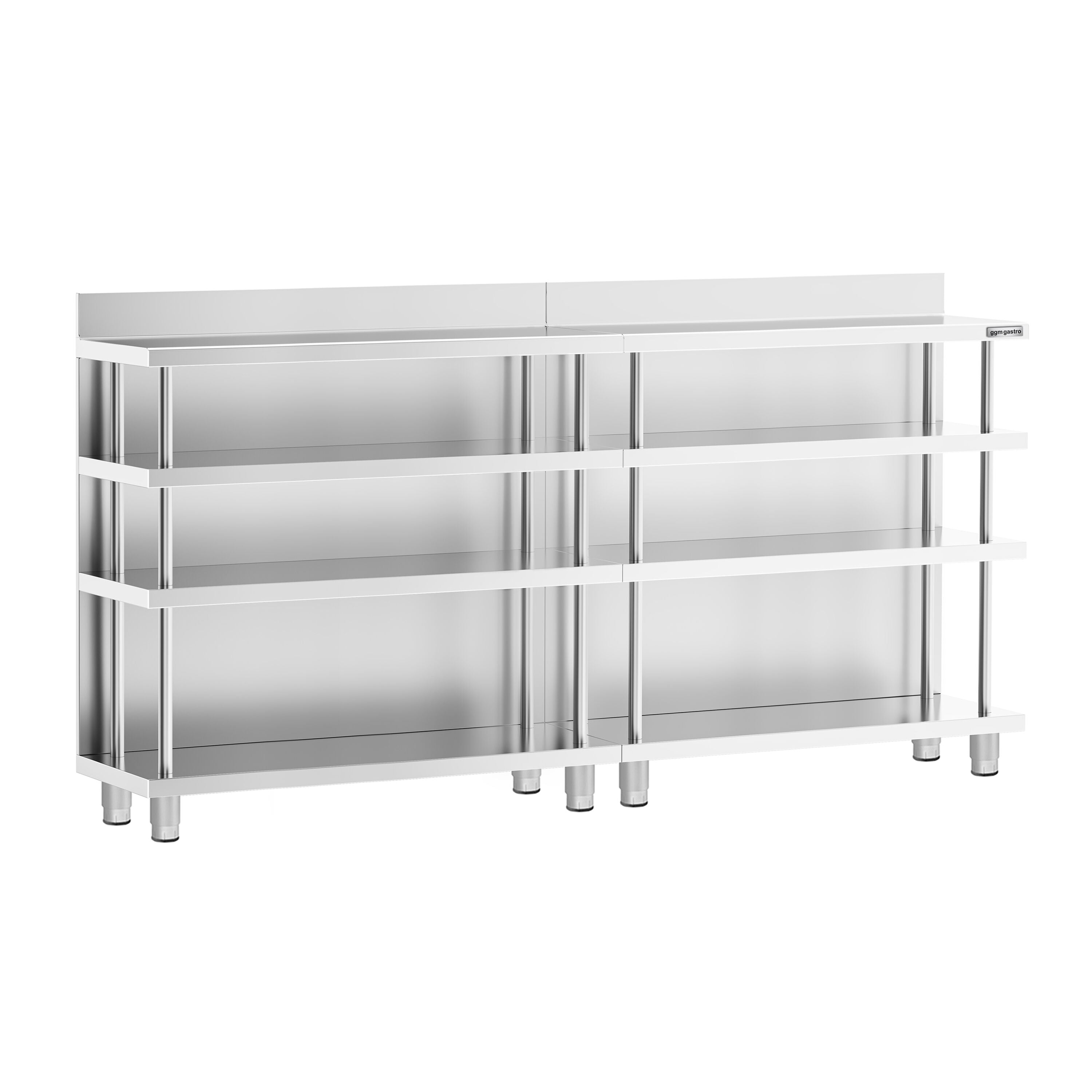 Bararbeidsbord - rustfritt stål - 2000x600mm - med 4 hyller
