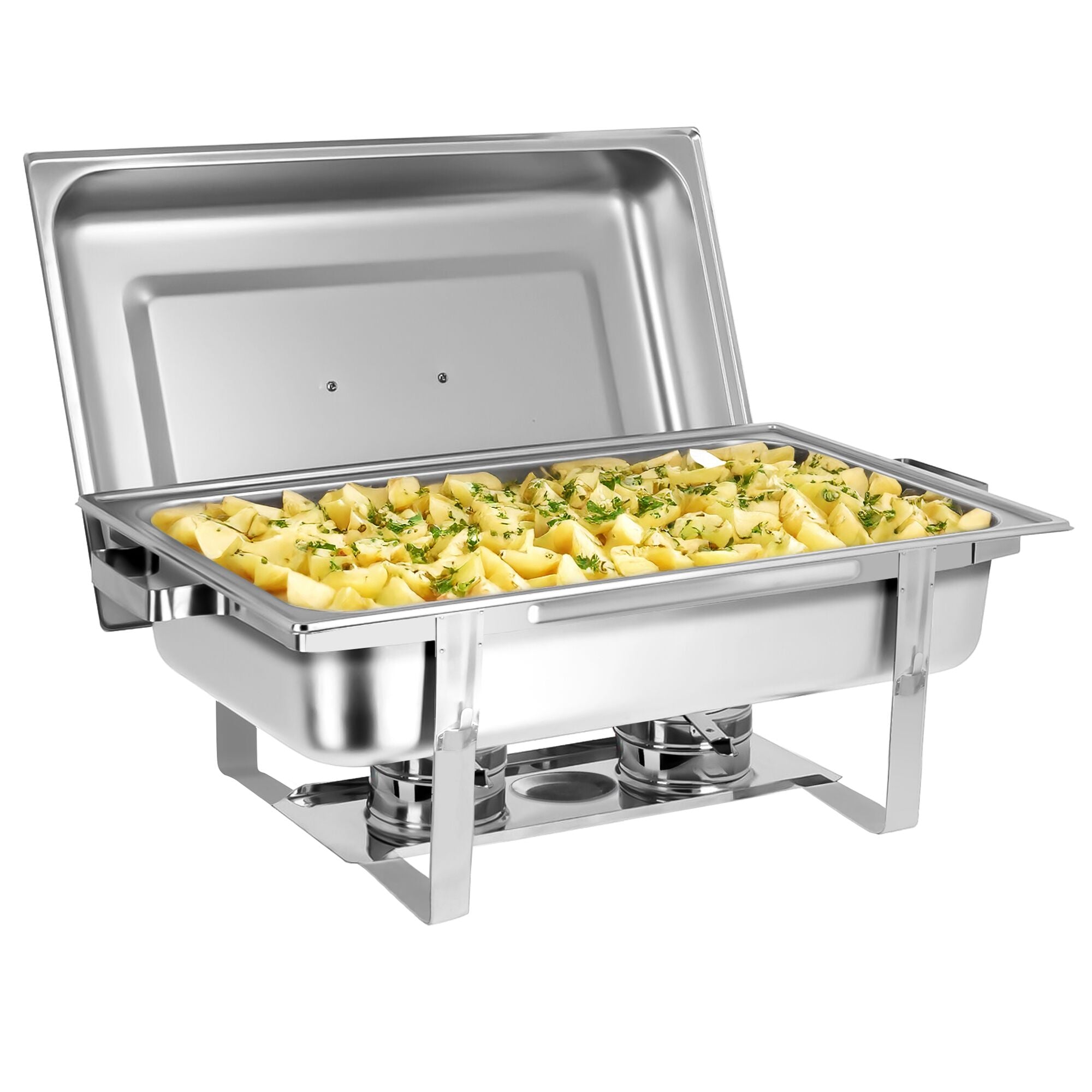 Chafing parabolen lang med hengslet lokk og ben i rustfritt stål