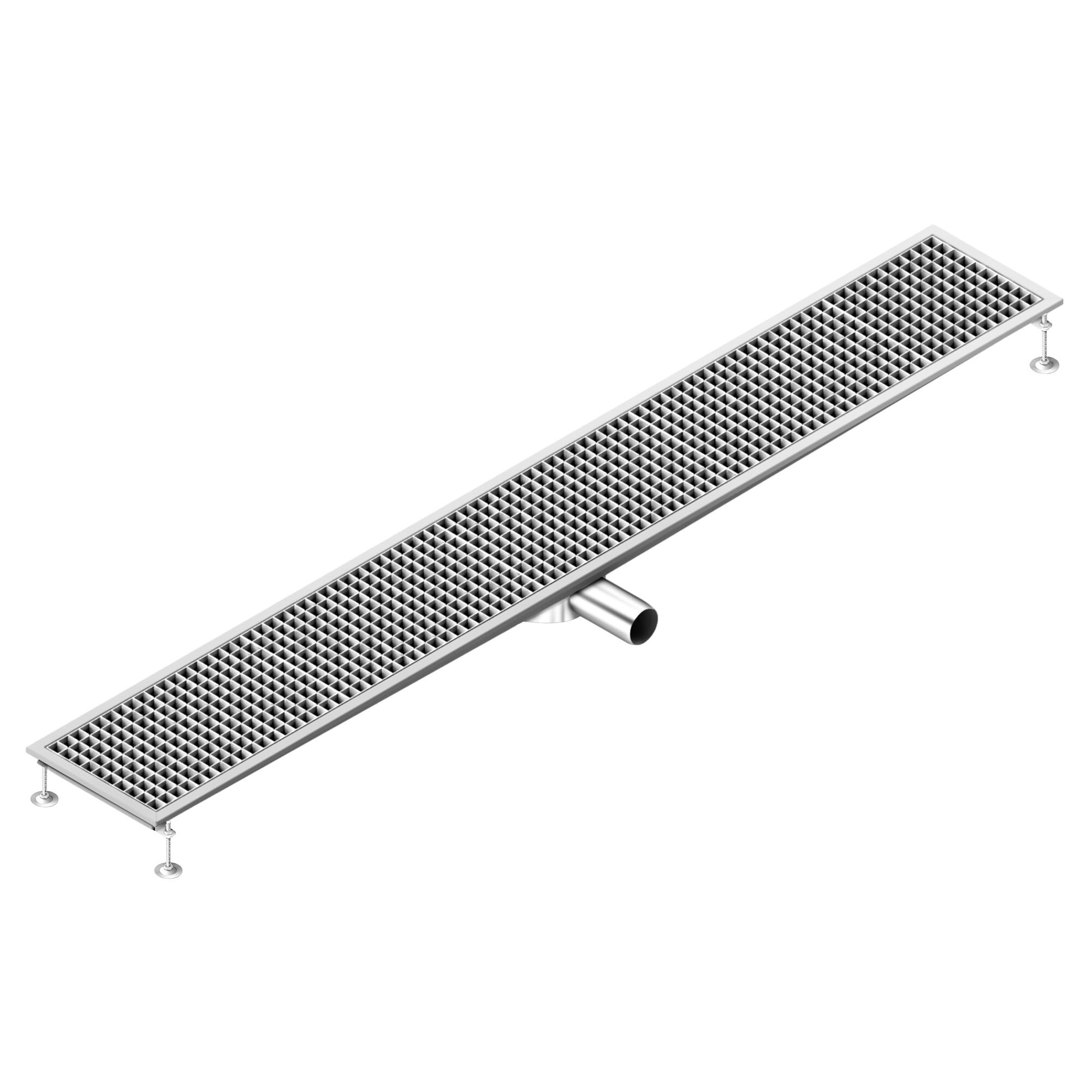 Gulvsluk i rustfritt stål - 2100x300 mm - flat design og sideavløp - Ø 70 mm
