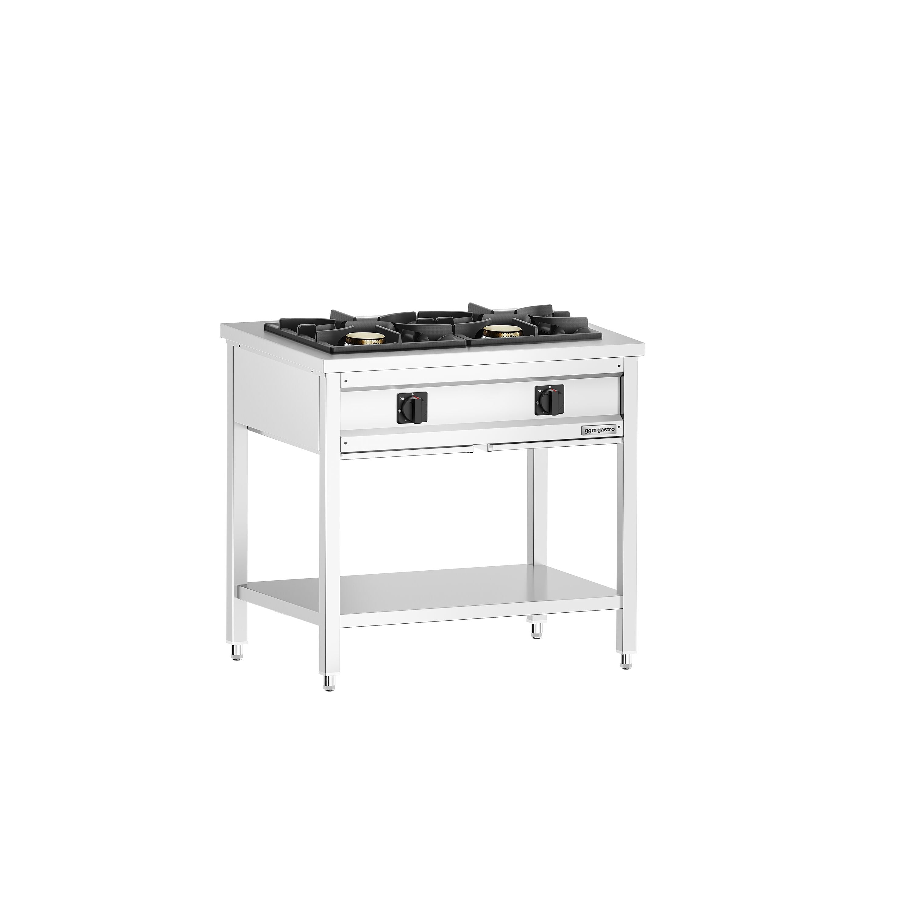Gasskomfyr - 17 kW - 2 brennere - åpen med bunn og dryppbrett