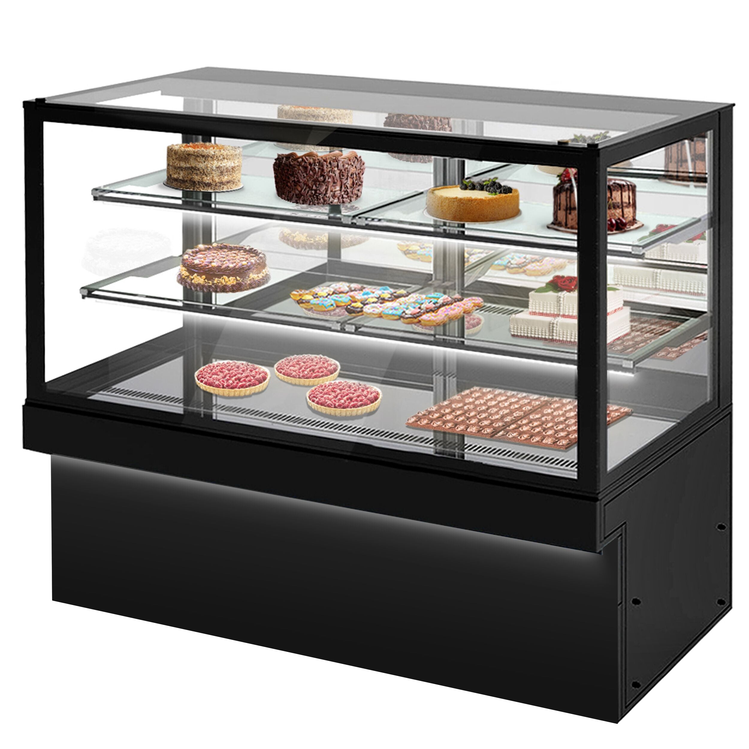 Kakevitrine TORONTO - 1800 mm - svart front - LED-belysning - 3 hyller