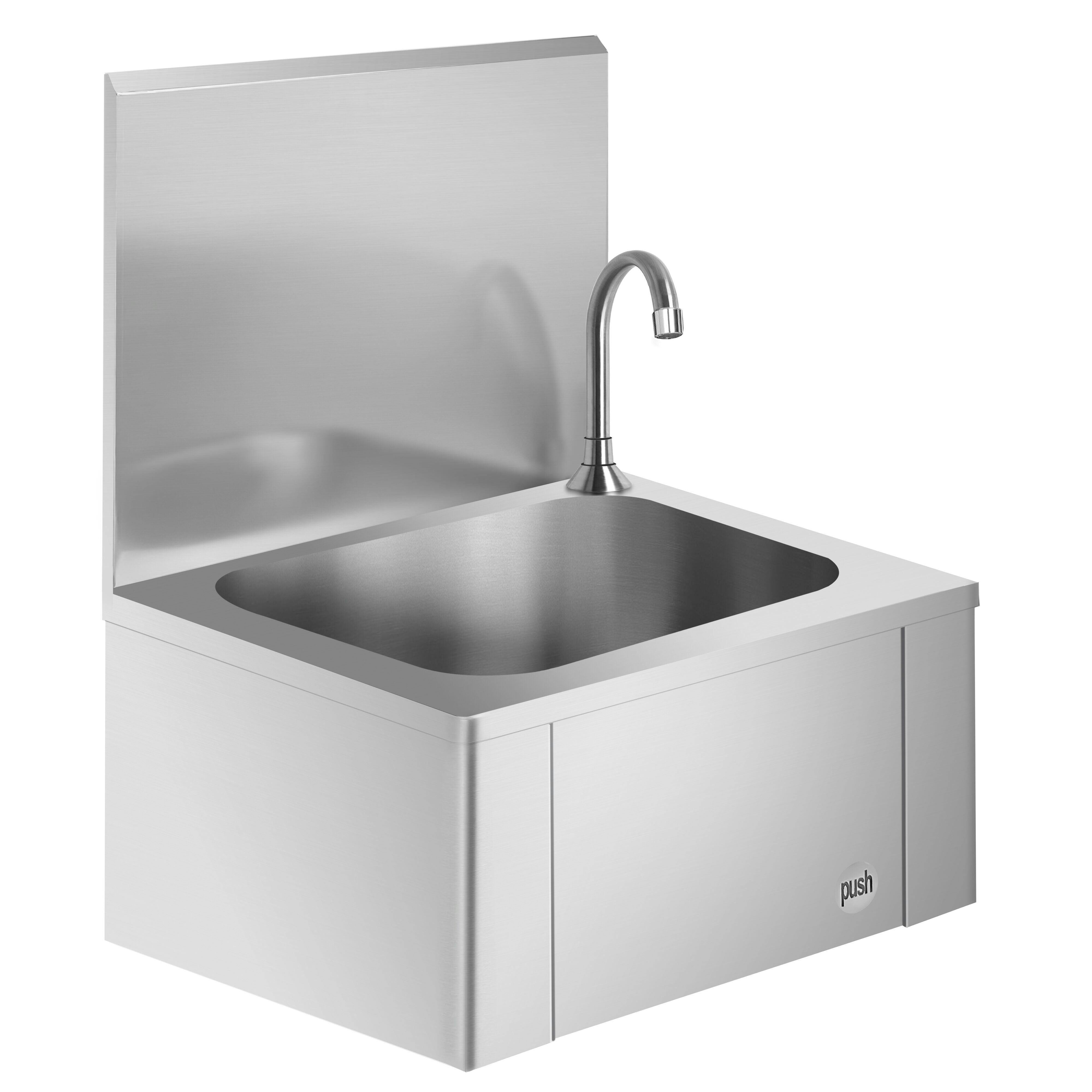 Håndvaskkum - rustfritt stål - med knekontroll (kaldt- og varmtvannstilkobling)