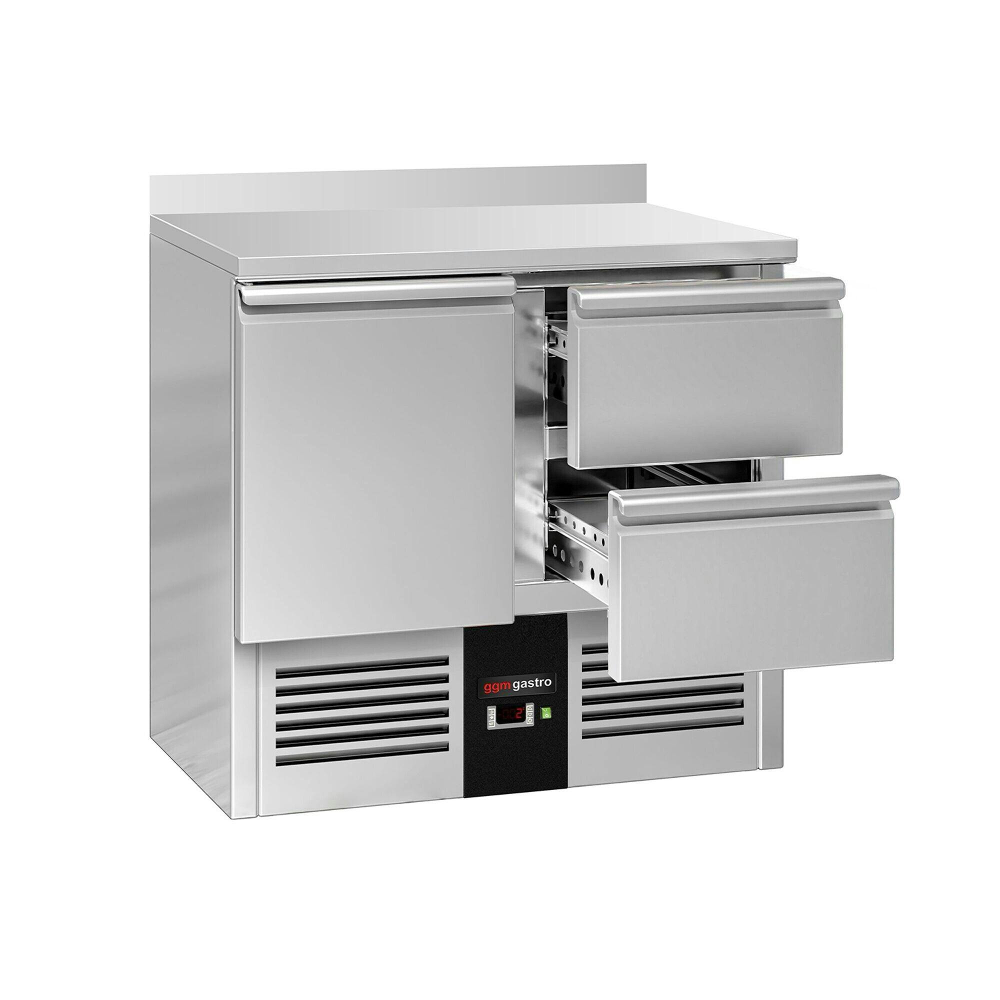 Saladette / kjølebord PREMIUM - 0,9 x 0,7 m - med 1 Dør og 2 Skuffer 1/2 og Oppkant