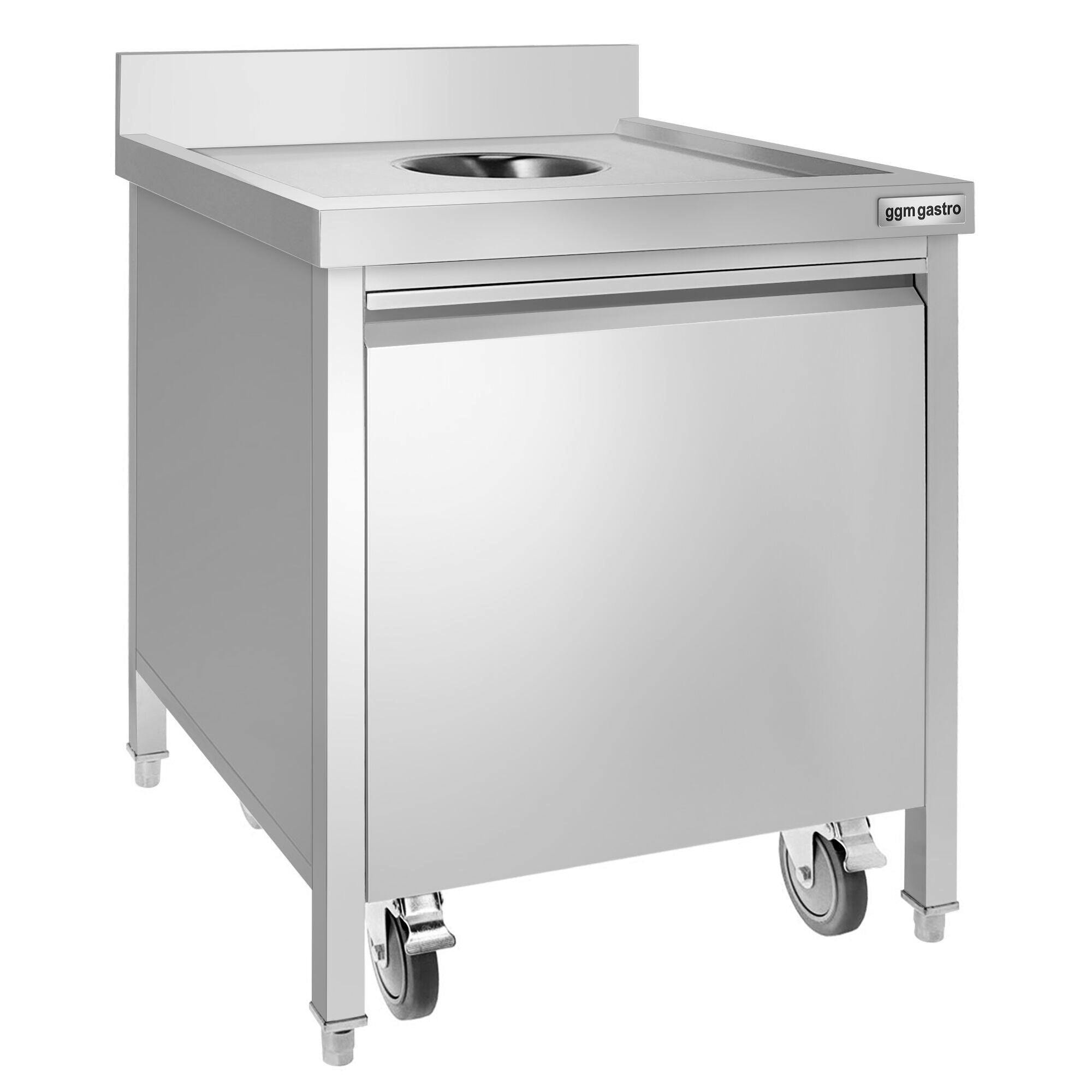 Søppelbøtte i rustfritt stål med rullebeholder og oppkant - 50L