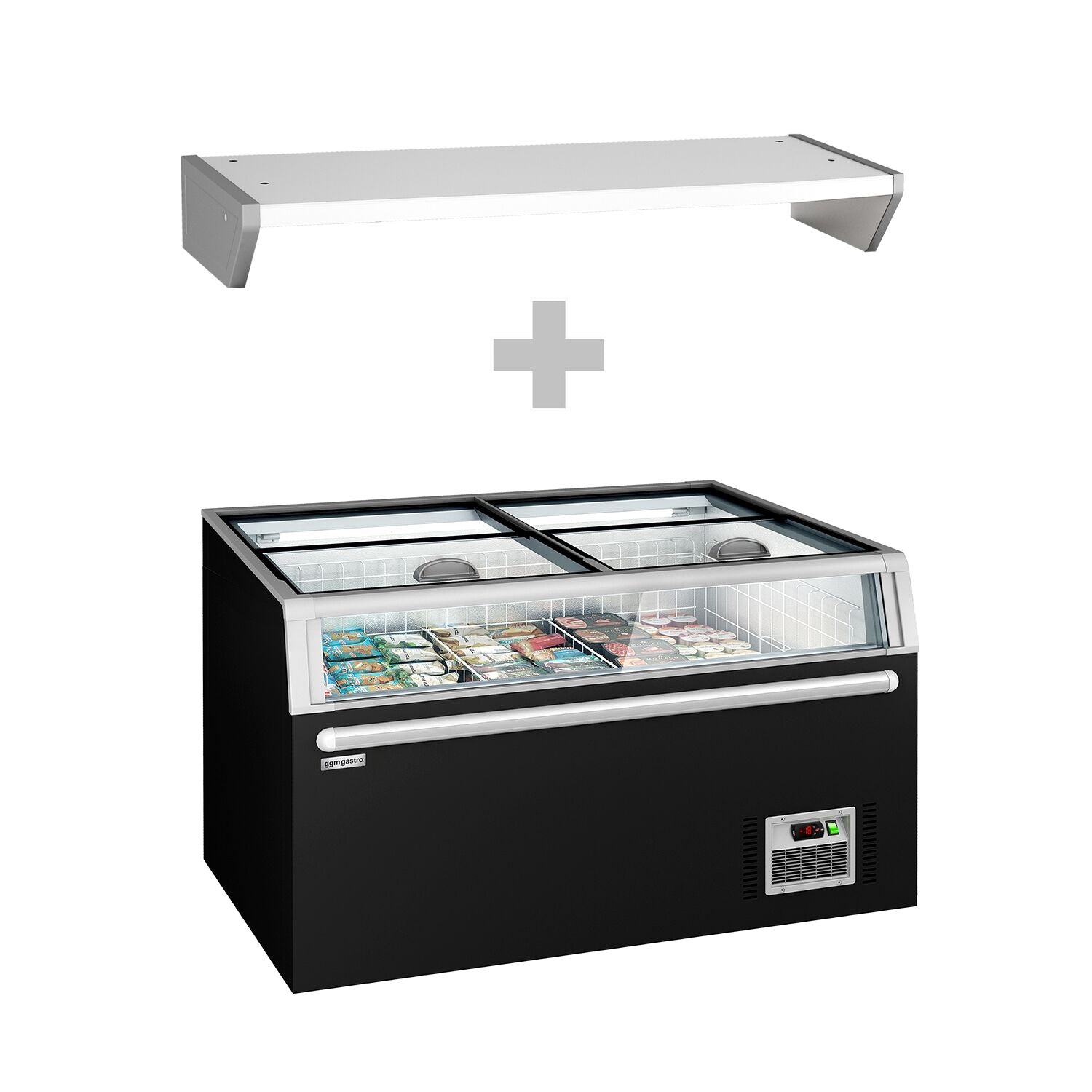 Supermarked fryseskap - 1454 mm - 402 liter - med 2 skyvedører - svart