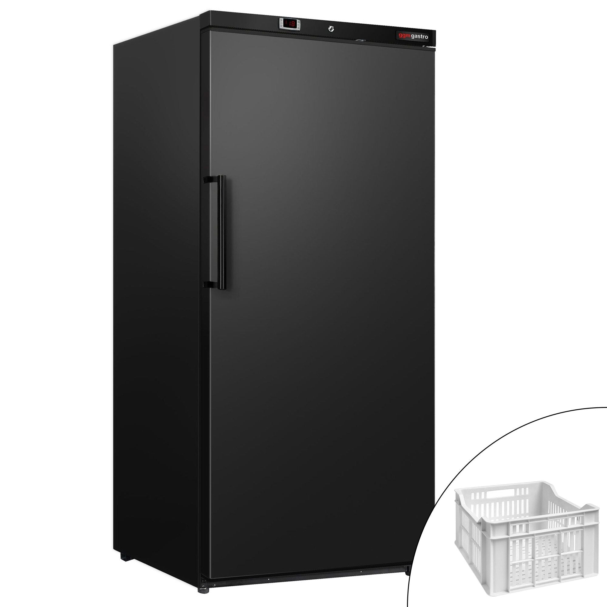 ECO oppbevaringsfryser - 600 liter - med 1 dør og 11 kurver - plastinnredning i døren - svart